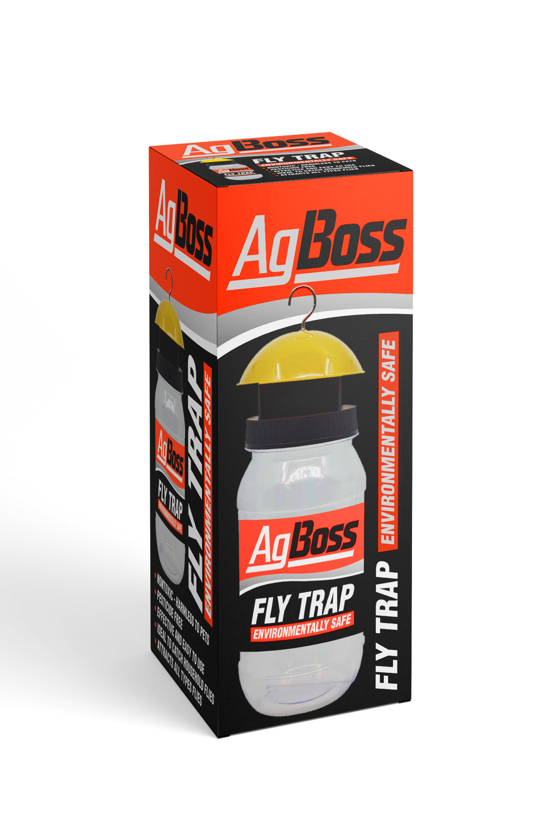 Durable plastic 1.3 litre traps hold up to 6,000. Ideal for use around livestock operations. Your reusable AgBoss Fly Trap won’t rust when exposed to the elements and ammonia. Hook makes trap easy to hang. Includes a non-toxic bait.