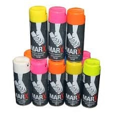 MARX the new name in spot and survey paint. Upside down aerosol paint. For construction site layout, marking trenches, perimeters etc. Vast selection of colours.