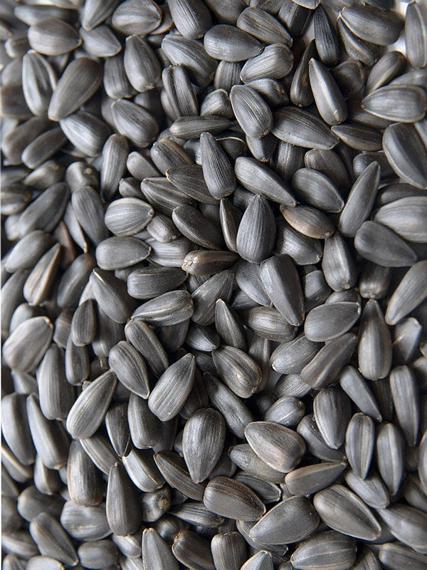 Black sunflower is higher in oil than grey stripe sunflower, so is more suited to poultry, wild birds or birds that have more room to fly around.