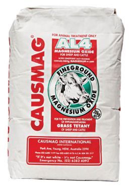Causmag is used to supplement sheep and cattle diets where Magnesium levels may be low. Magnesium has a role in metabolism, formation of bone and teeth as well as maintenance of nervous function. It is used as an addition to stock feeds, medicated mineral stock blocks and as an oral drench for dairy cattle.