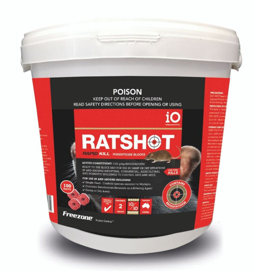 RATSHOT Final Kill Paste & Rapidkill Blocks employ the explosive power of Brodifacoum making them ONE-FEED Killers and super effective for high rodent populations. Most powerful active available. Genuine ONE-FEED killing power of both Rats and Mice. Science based formulation. Weather Proof.